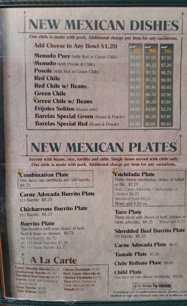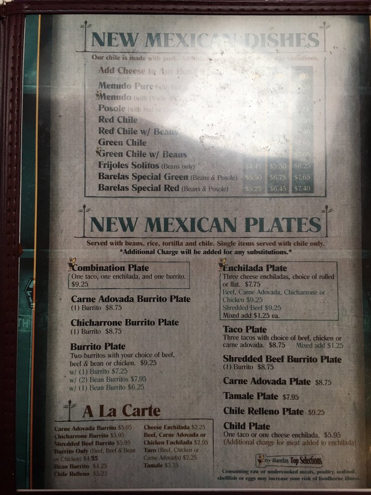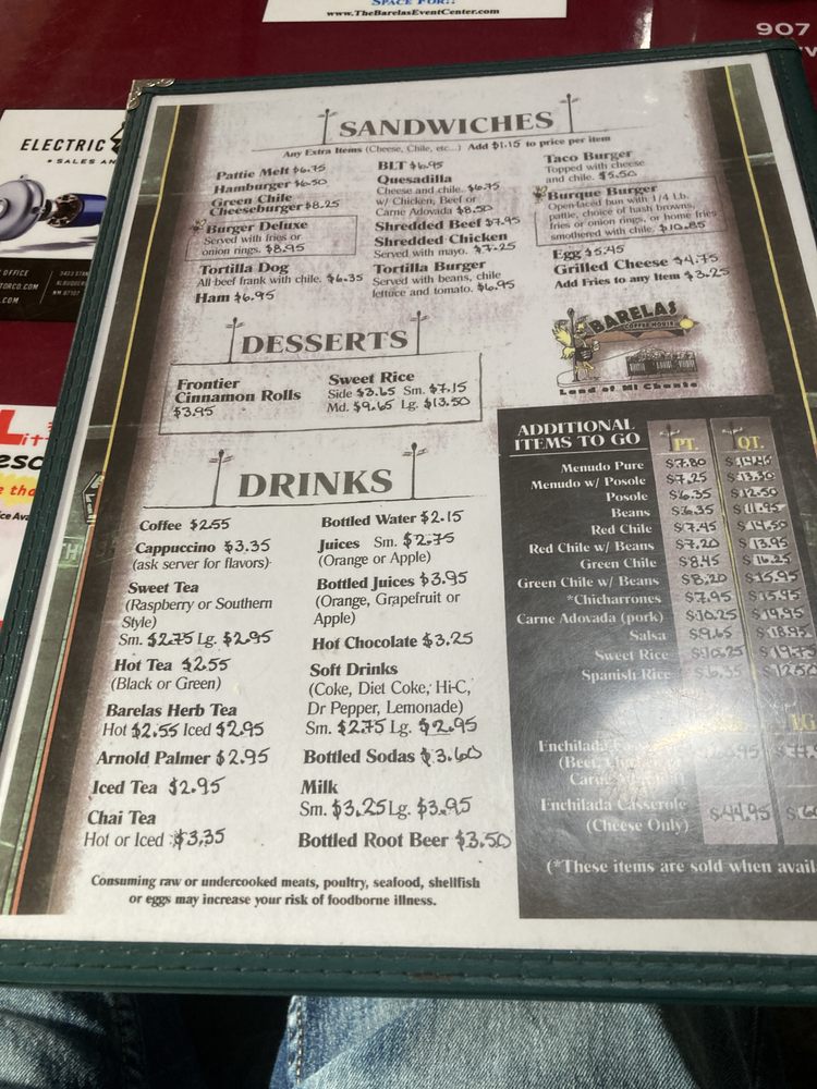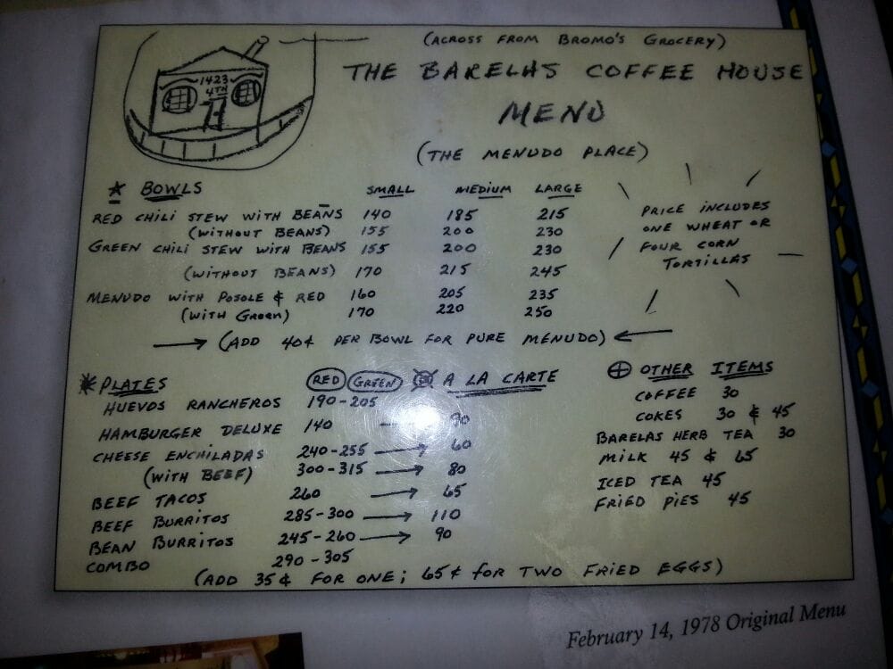 Barelas Coffee House Menu